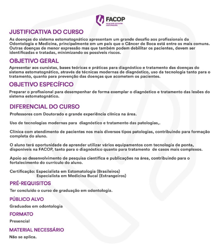 Aproveite a parceria entre a APCD Marília e a FACOP para fazer a sua Especialização em Estomatologia, com a coordenação do Dr. Edilmar Marcelino.