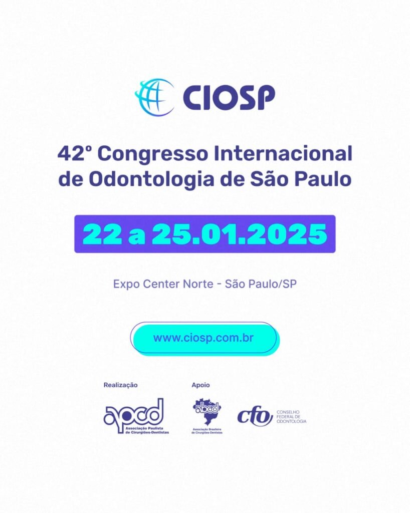 O 42º Congresso Internacional de Odontologia de São Paulo (CIOSP) começa no dia 23 de janeiro de 2025 e promete ser um marco no setor odontológico. O evento contará com uma ampla programação de palestras, workshops, projeções práticas e uma feira comercial com as últimas inovações em produtos e tecnologias.